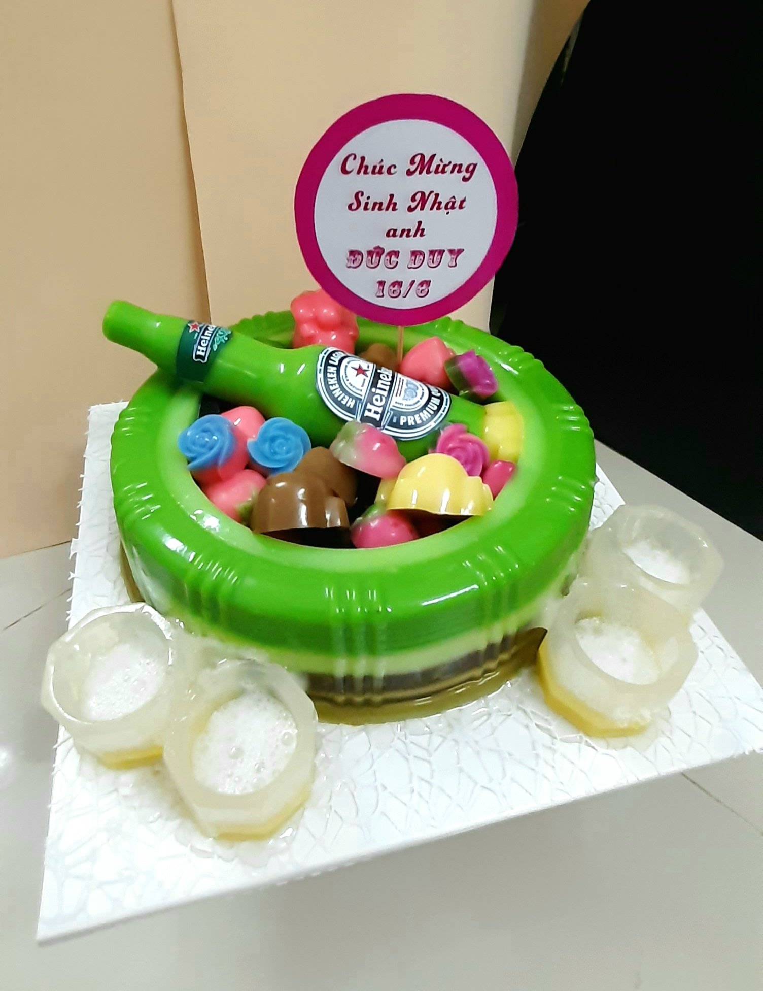 Bánh rau câu Mừng sinh nhật cùng Bia Heniken