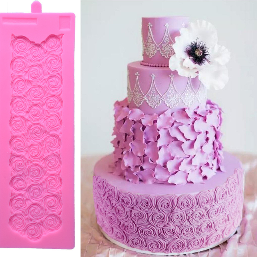 Khuôn silicon Viền hoa hồng làm bánh rau câu 4D