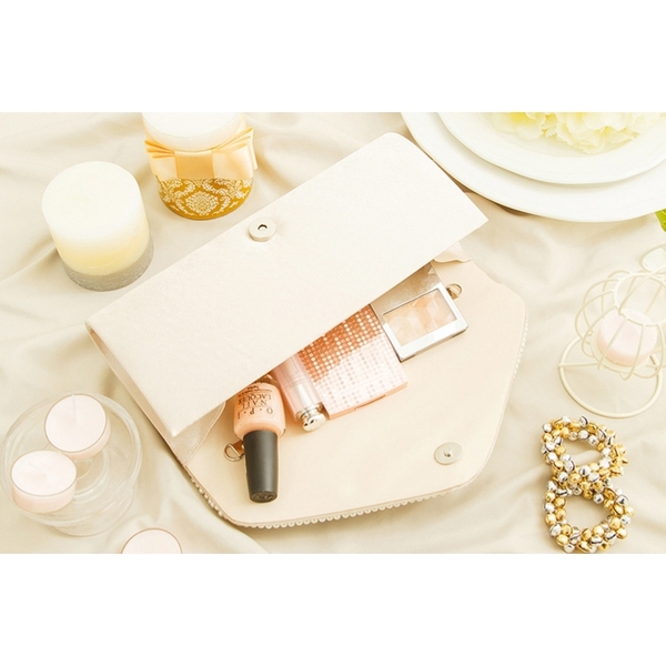 - VÍ gồm 1 ngăn lớn, bên trong lót vải mềm mại chứa được nhiều vật dụng cá nhân (son phấn, khăn giấy,.. ), bên trong có 1 ngăn nhỏ có thể để giấy tờ